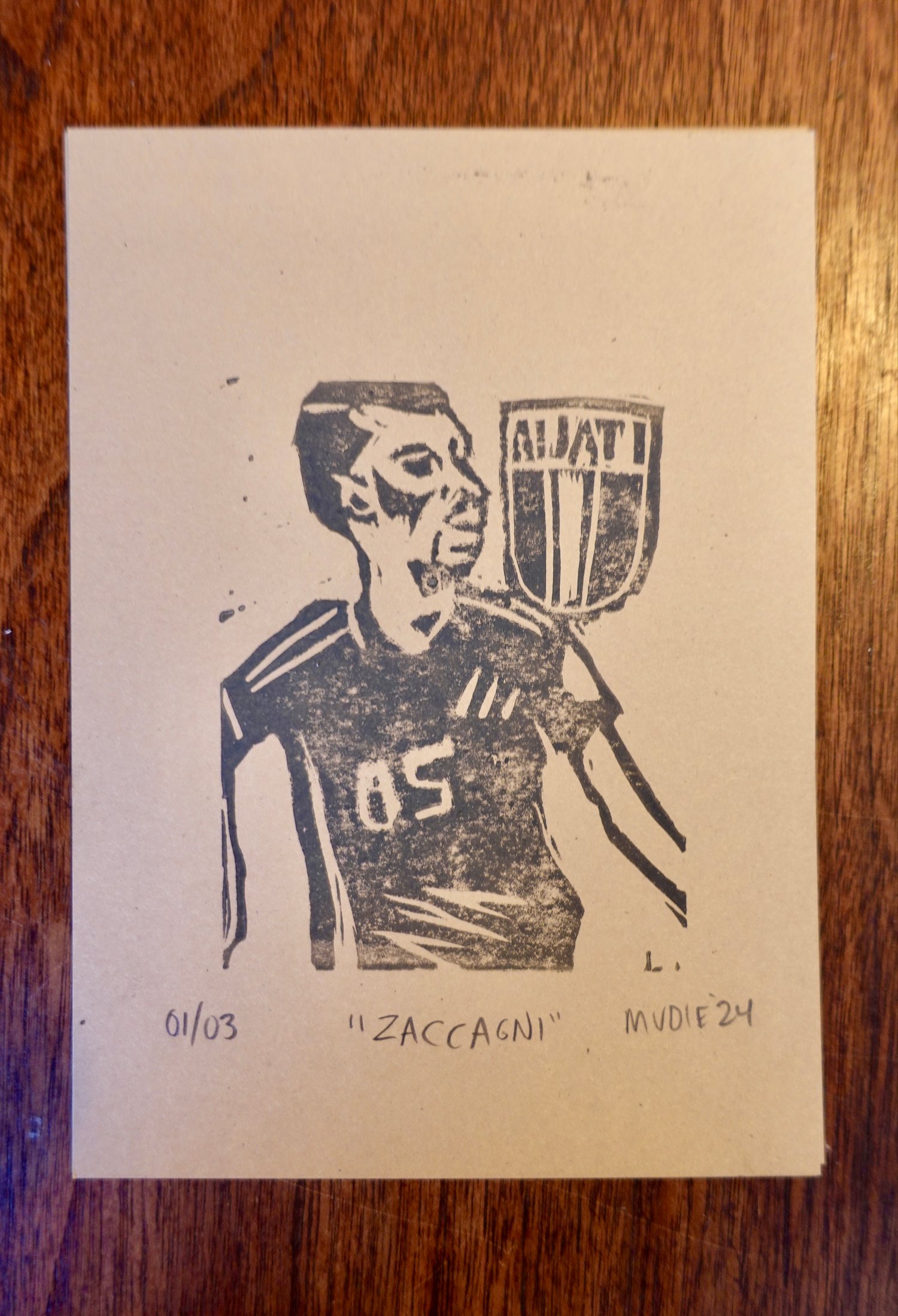 Depuis quelques années je suis tombé en amour avec le football ( soccer ) et j'adore dessiner, peindre et maintenant graver des joueurs, logos ou scène de ce sport mondial.