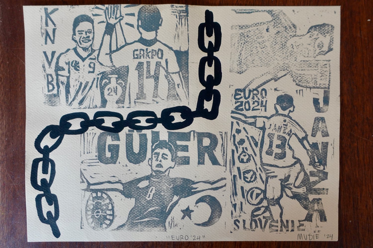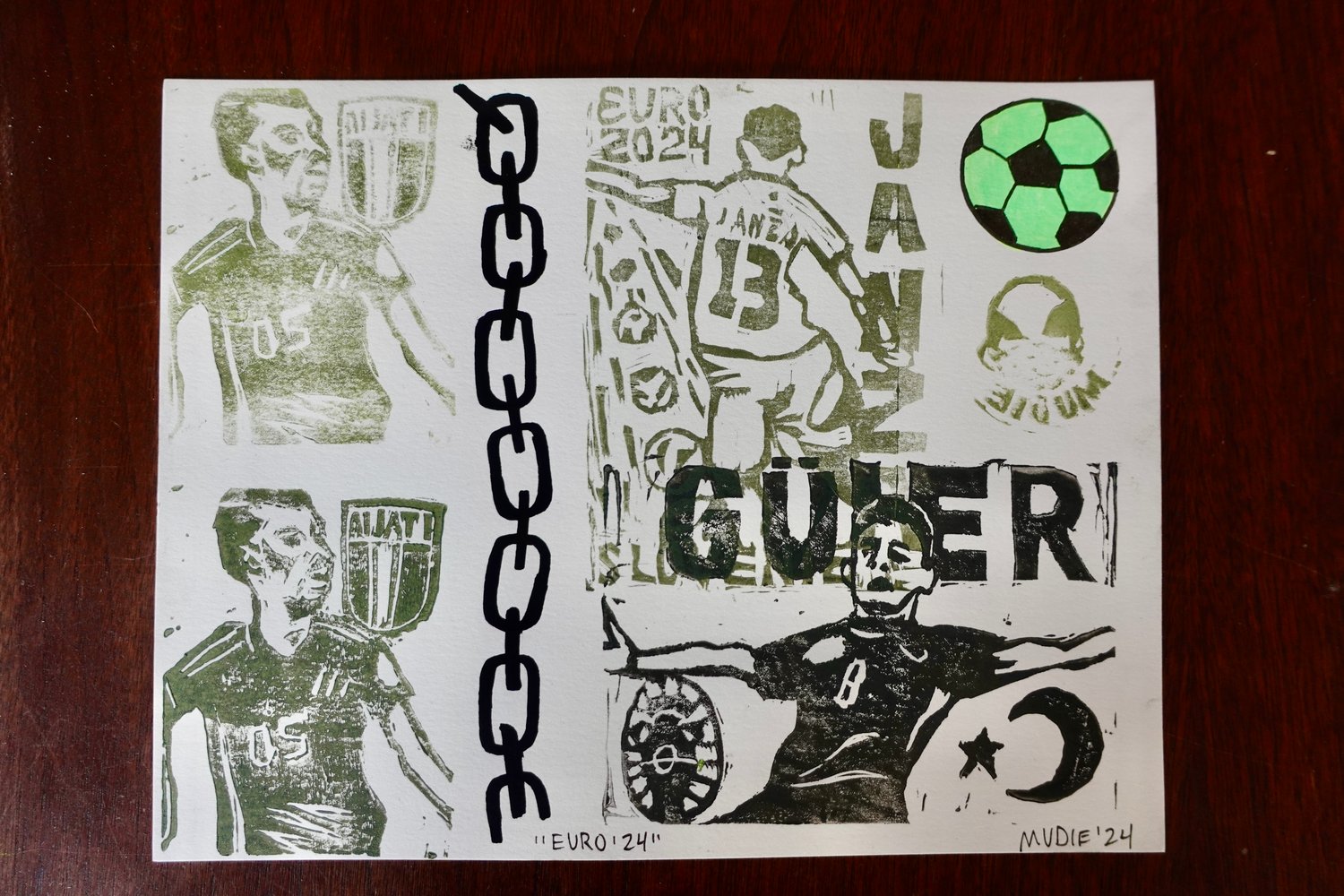 Comme je découvrais en même temps les joies de l'impression en lino, j'ai décidé de commémorer certains de mes moments prefs de l'euro avec des artworks qui représentaient mon bonheur à regarder le tournoi.
