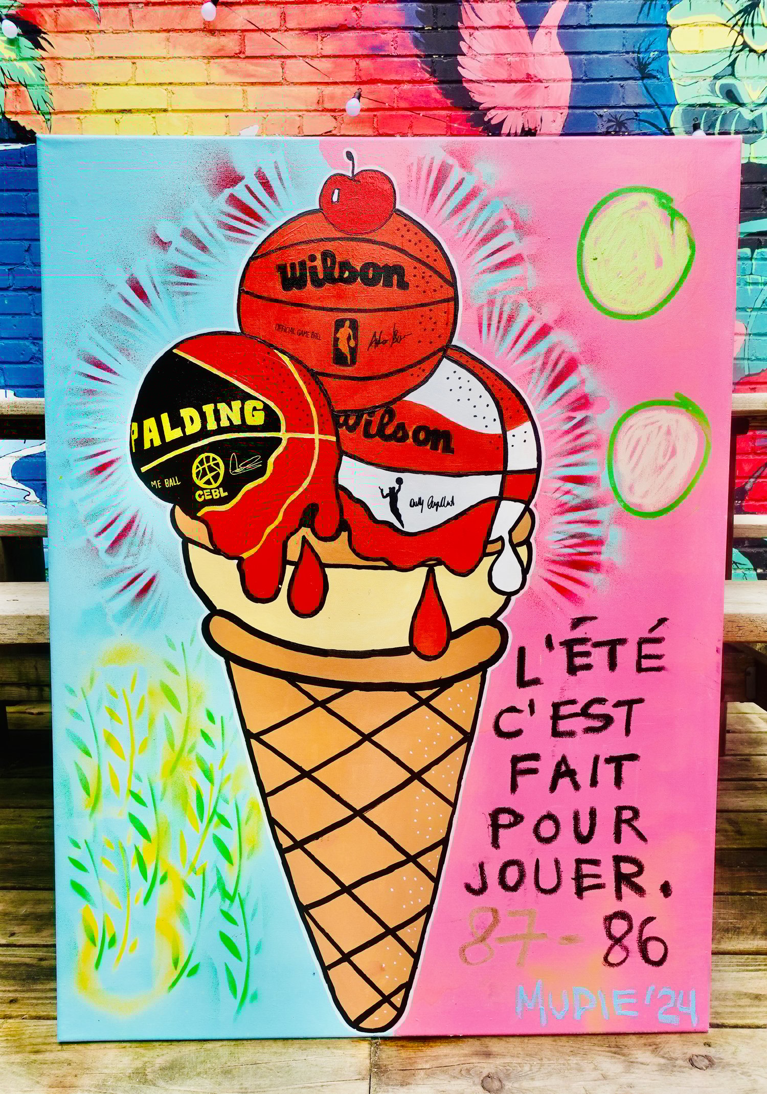 Toile que j'ai fais en 2024, sur le terrain de basketball de L'Alliance de Montréal,