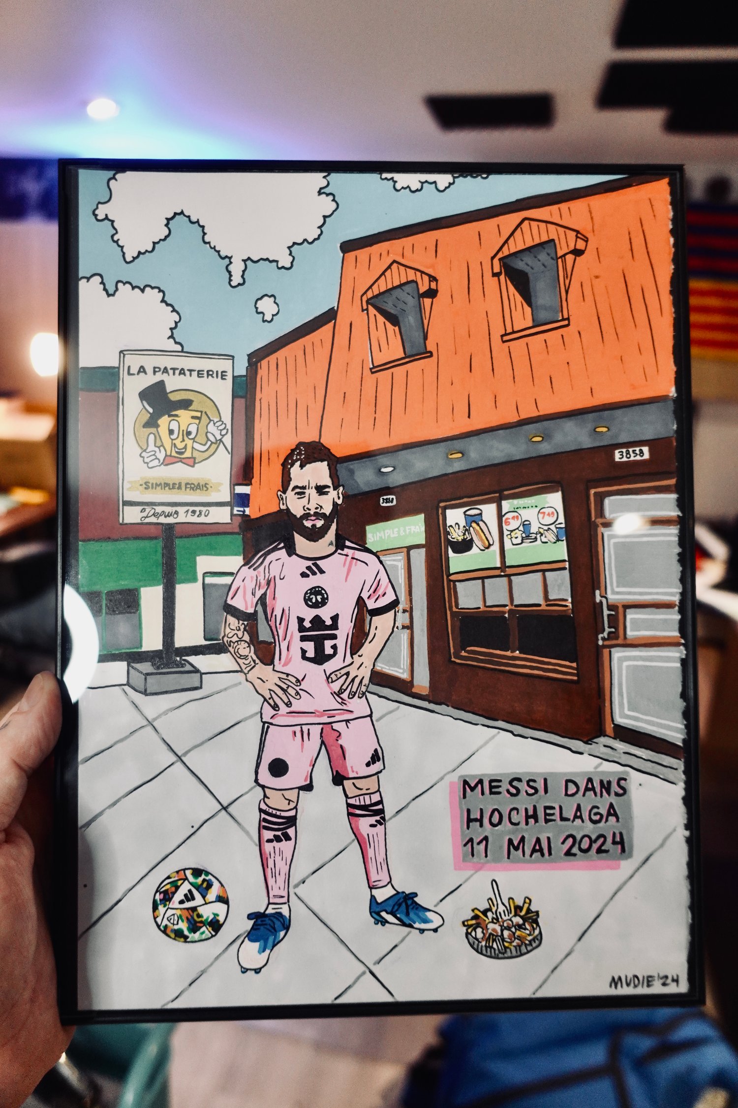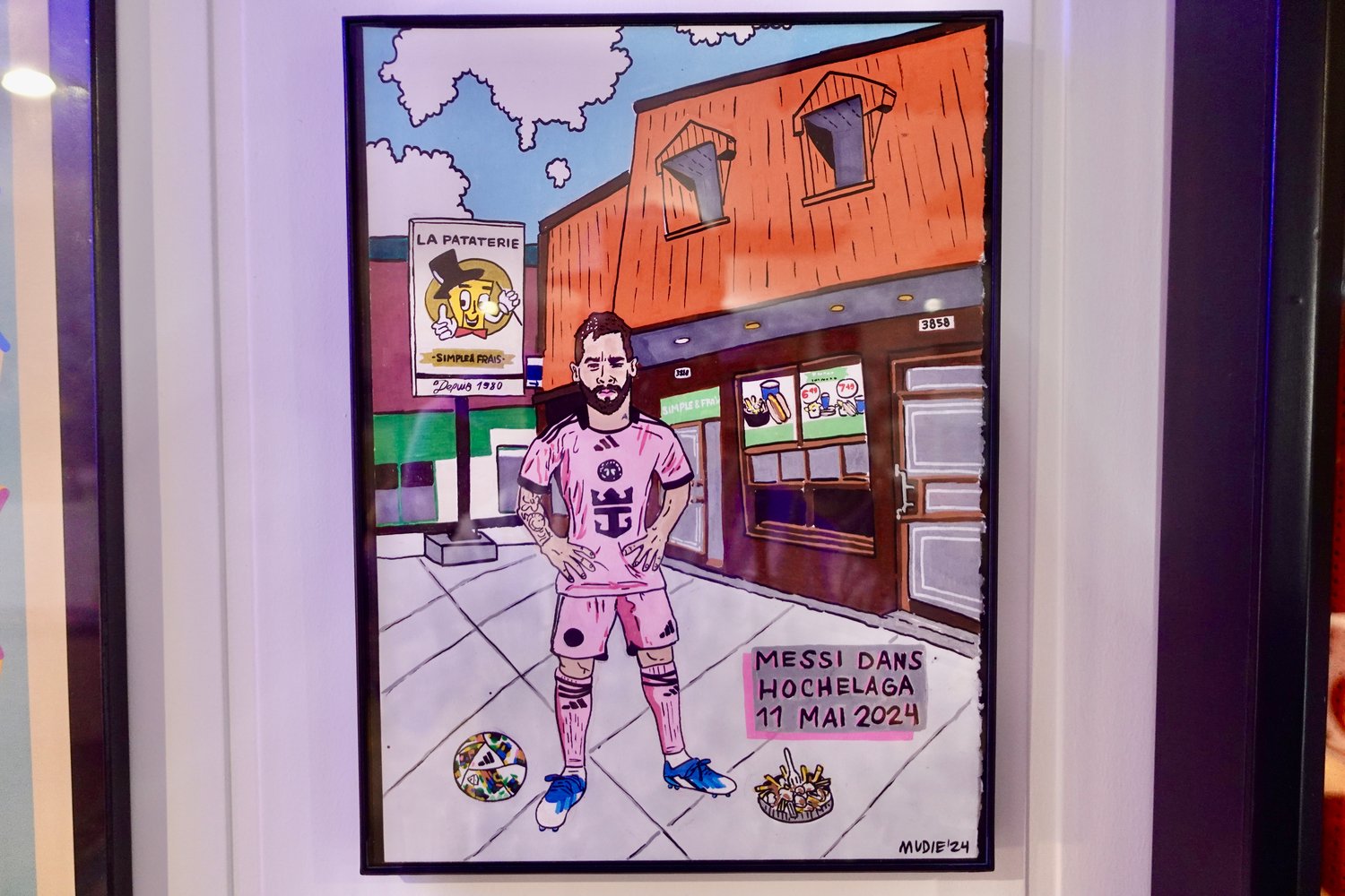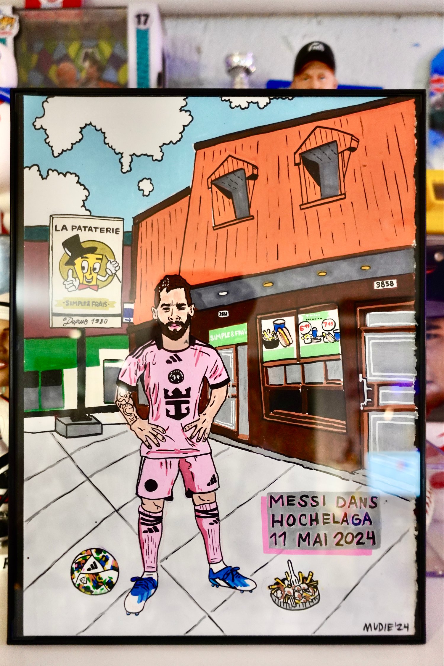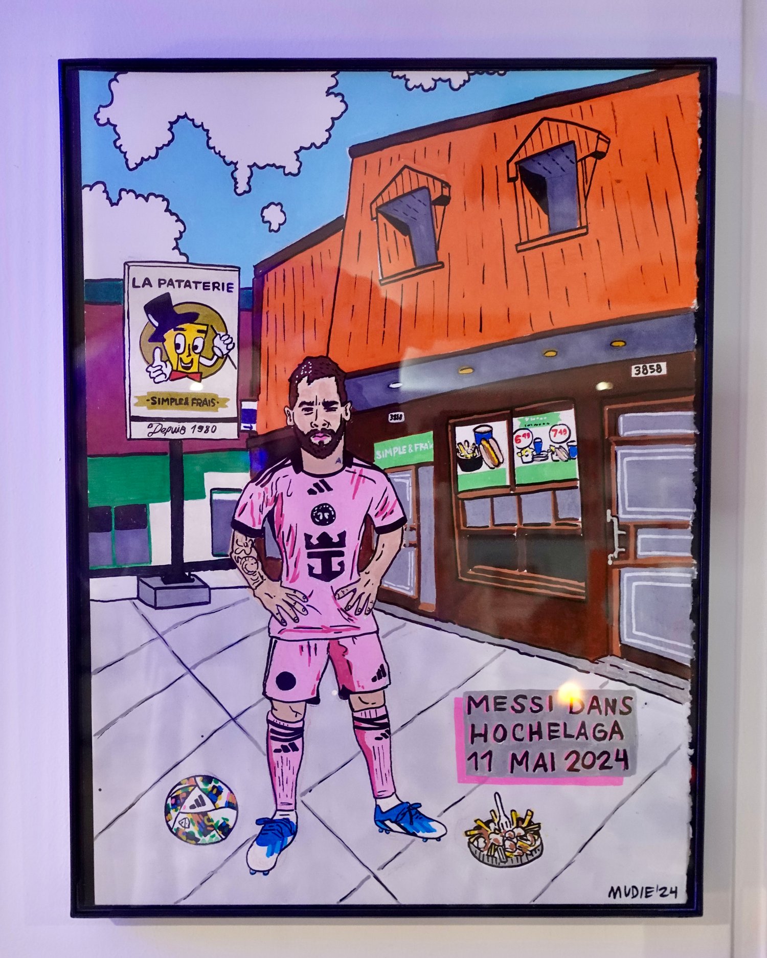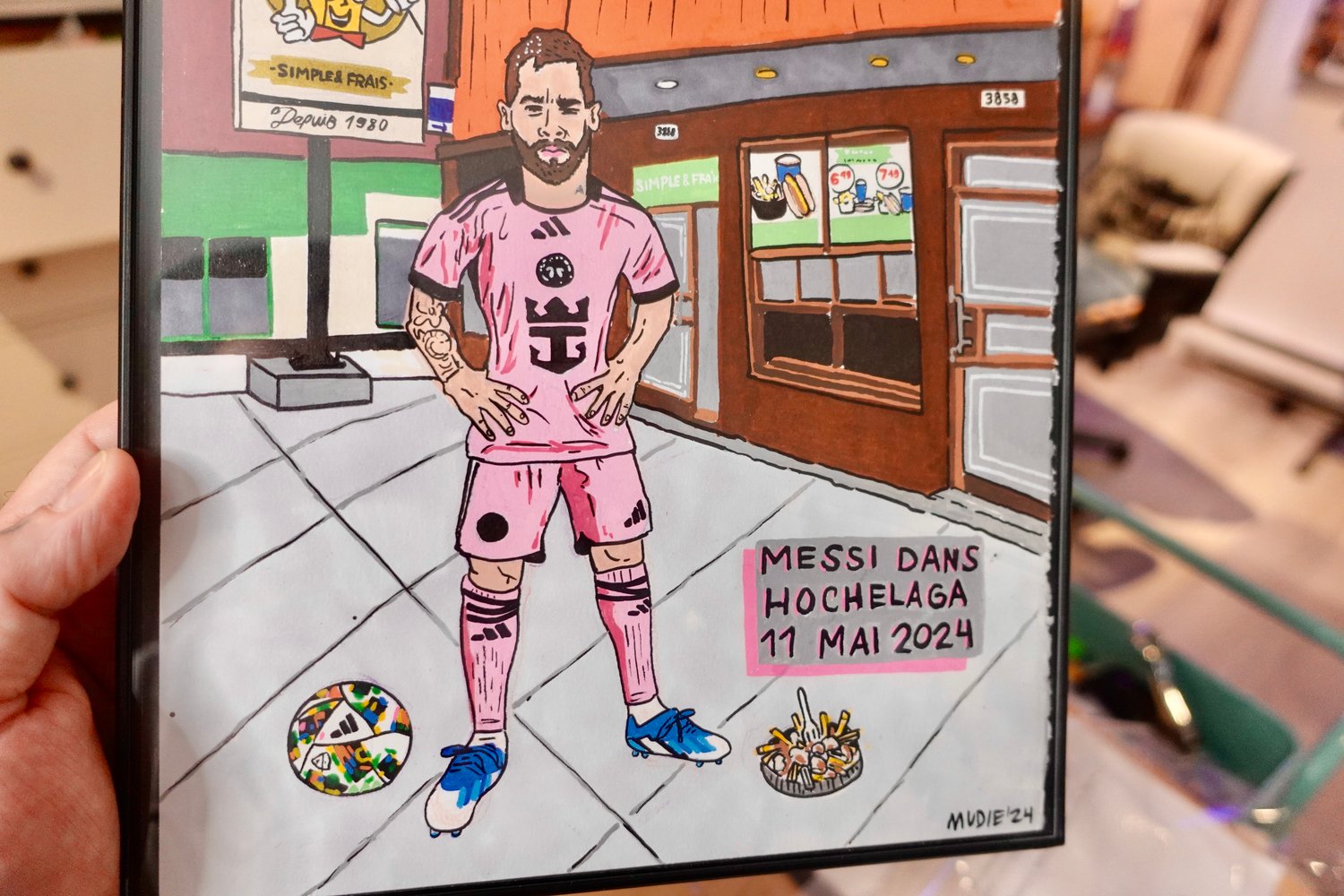 " Messi dans Hochelaga " ORIGINAL- acrylique sur carton 9 x 12''