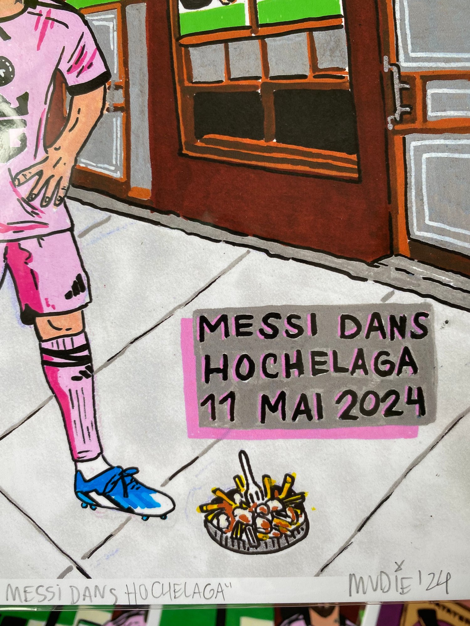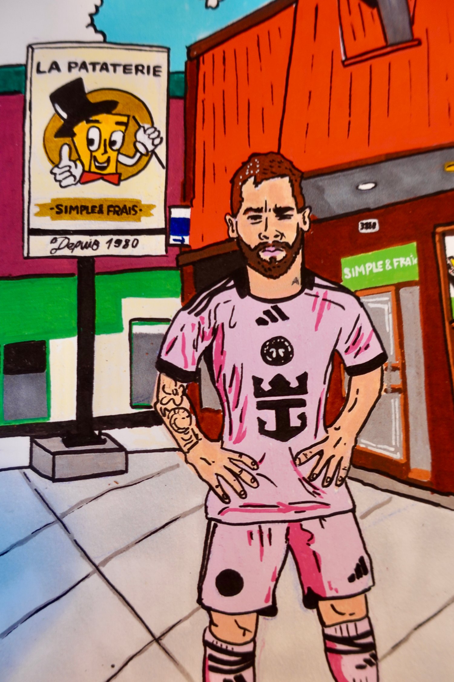 C'est un moment figé dans l'histoire. Quelques jours avant le Pouzza, Messi était dans Hochelag pour jouer contre notre CF et il s'est arrêté à la Pataterie pour se clancher une pouts sauce foncée.