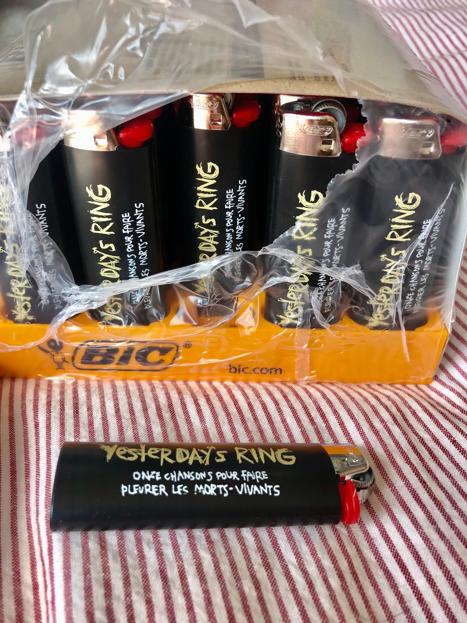 Quand j'ai releasé pour la première fois en vinyle l'album " 11 Chansons Pour Faire Pleurer Les Morts-Vivants " de Yesterday's Ring, j'ai voulu faire une verzion deluxe avec un shirt, un lighter et un print exclusif.